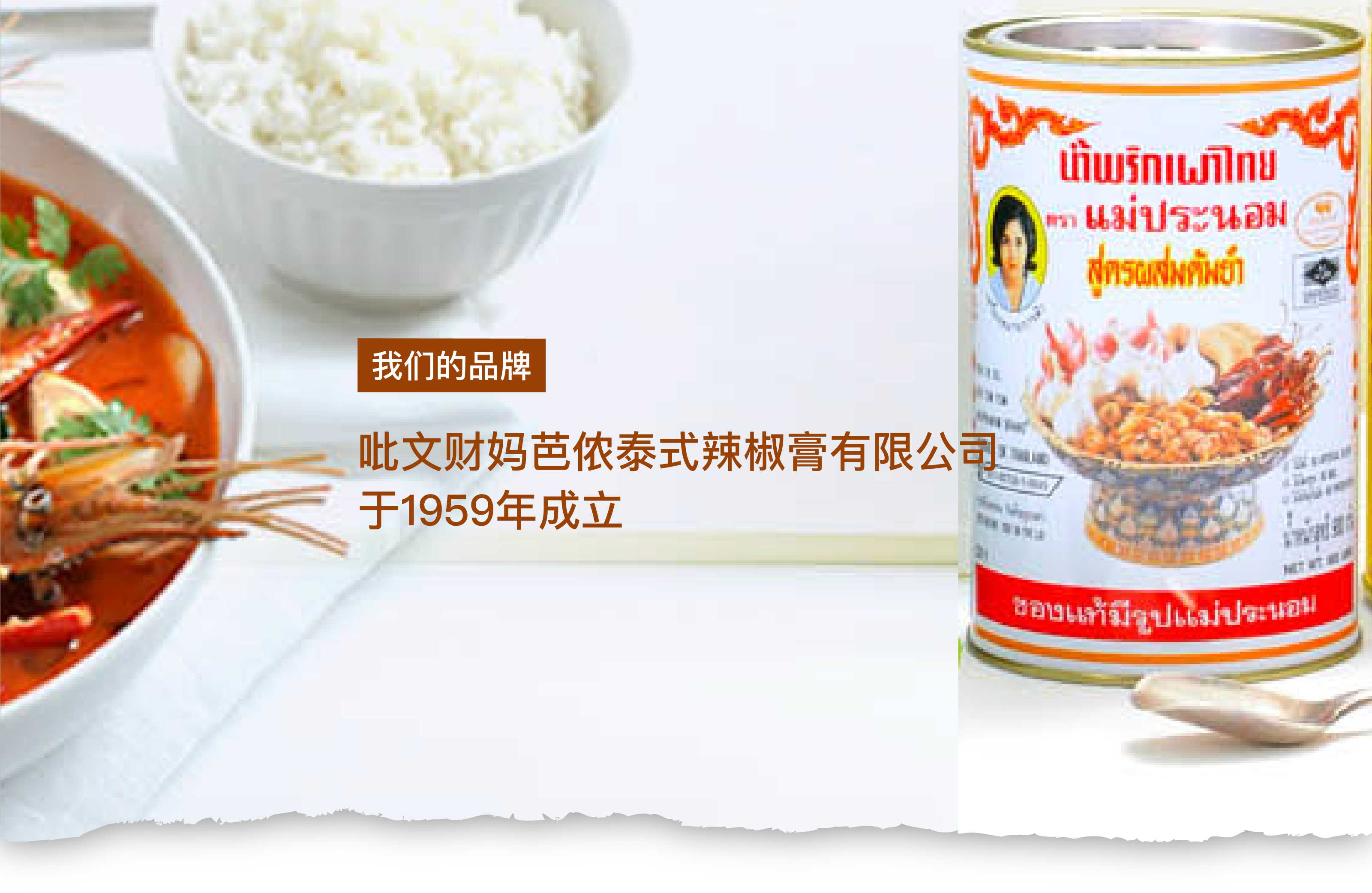 吡文财妈巴侬泰式辣椒膏有限公司是由 Sirichai 先生及 Pranom Daengsupha 女士创办于1959年。成立时产品单一,仅有一种即“妈芭侬”品牌玻璃瓶装的泰式辣椒膏。逐渐发展成为拥有“妈芭侬”及“SIAM KITCHEN”等品牌的生产与销售一体的多元化食品企业。产品类型丰富,如:辣椒膏,蘸酱,咖喱酱,素食调料, 简便套装(懒人料理包)及其它产品。