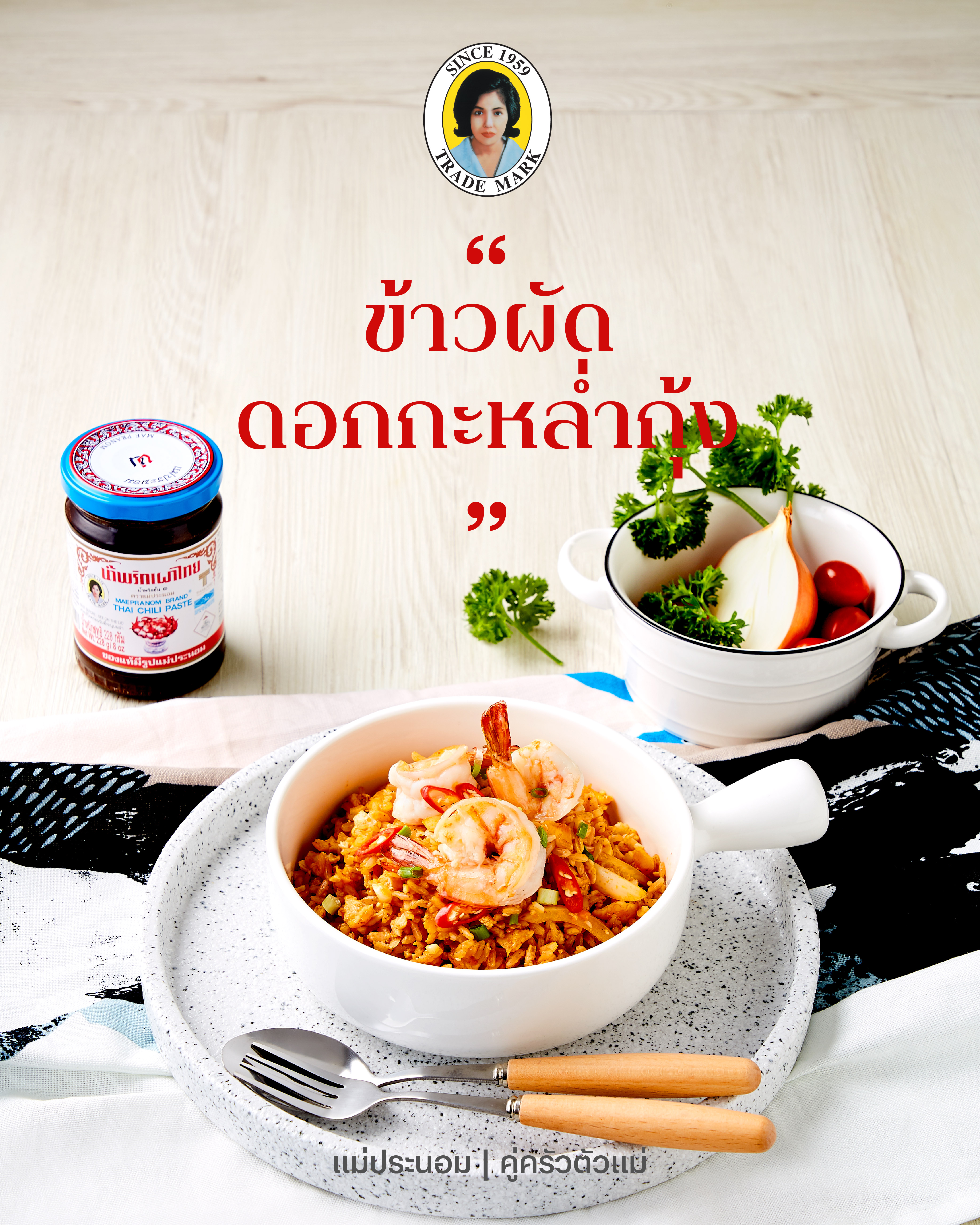 #แม่ประนอม #คู่ครัวตัวแม่ # ข้าวกล้องหุงสุก #กุ้งสดไว้หางผ่าหลัง #น้ำมันพืช # หอมหัวใหญ่ #กระเทียมสับ #ไข่ไก่ # ดอกกะหล่ำสับ #แครอทสับ #น้ำพริกเผาไทยตราแม่ประนอม #ซอสหอยนางรม #น้ำตาลทราย #น้ำปลา #ซีอิ๊วขาว #เกลือ #พริกขี้หนูแดงหั่นเฉียง #ต้นหอมซอย