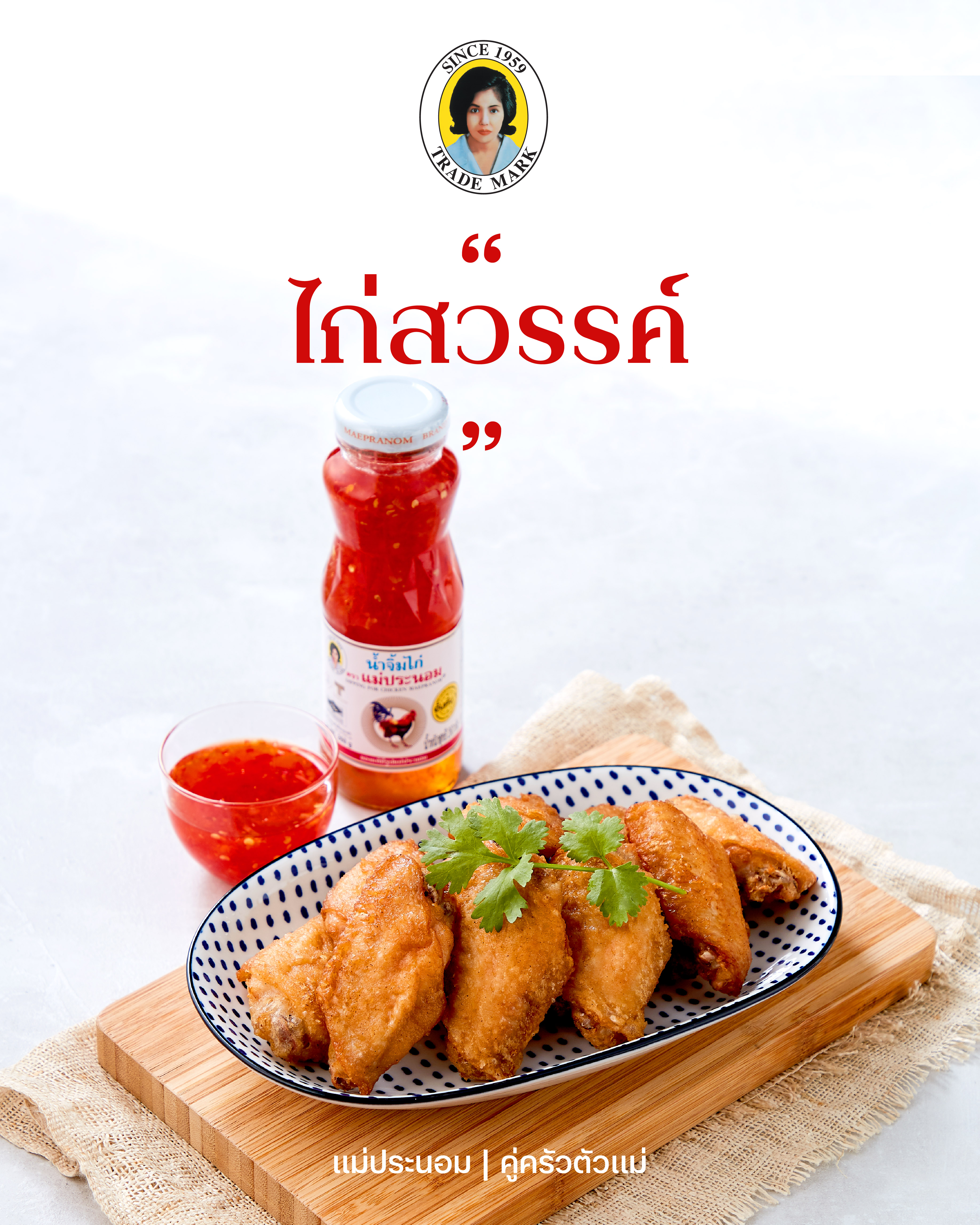 #แม่ประนอม #คู่ครัวตัวแม่ #ปีกกลางไก่ #ซีอิ๊วขาวเห็ดหอม #พริกไทยป่น #แป้งทอดกรอบ #น้ำเย็น #น้ำจิ้มไก่ตราแม่ประนอม #ผักชีสำหรับตกแต่ง #น้ำมันพืชสำหรับทอด