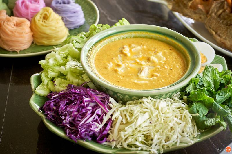 “ขนมจีนน้ำยาปู” (200 บาท) ใช้เป็นส่วนกรรเชียงปูเช่นเดียวกัน ตัวเส้นขนมจีนจะแต่งด้วยสีธรรมชาติไม่ว่าจะเป็นฟักทอง ดอกอัญชัญ กระเจี๊ยบ ใบเตย เมนูนี้จะมีขายที่ Central ศาลายา, Food Cilla ราชพฤกษ์ และตลาดสดศาลายา ใครผ่านแถวไหนแวะซื้อชิมกันได้นะคะ