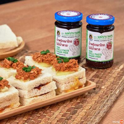 อาหารเช้าเป็นสิ่งที่ขาดไม่ได้ก่อนเริ่มต้นวันใหม่ แต่ก็มีเวลาเตรียมอาหารน้อยเสียเหลือเกิน วันนี้เลยอยากชวนเพื่อนๆ มาทำเมนูขนมปังง่ายๆ อย่าง “แซนด์วิชน้ำพริกเผาทูน่า” ที่ใช้วัตถุดิบเพียงไม่กี่อย่าง แถมเรายังมีตัวช่วยประหยัดเวลาและรสชาติดีจนไม่ต้องปรุงรสเพิ่มอย่าง น้ำพริกเผาไทยไม่มีน้ำตาล ตราแม่ประนอม ที่ช่วยทำให้การเตรียมอาหารเช้าของเราไม่ยุ่งยากอีกต่อไป ถ้าพร้อมแล้วไปดูสูตรและวิธีทำแซนด์วิชน้ำพริกเผาทูน่ากันเลย!
