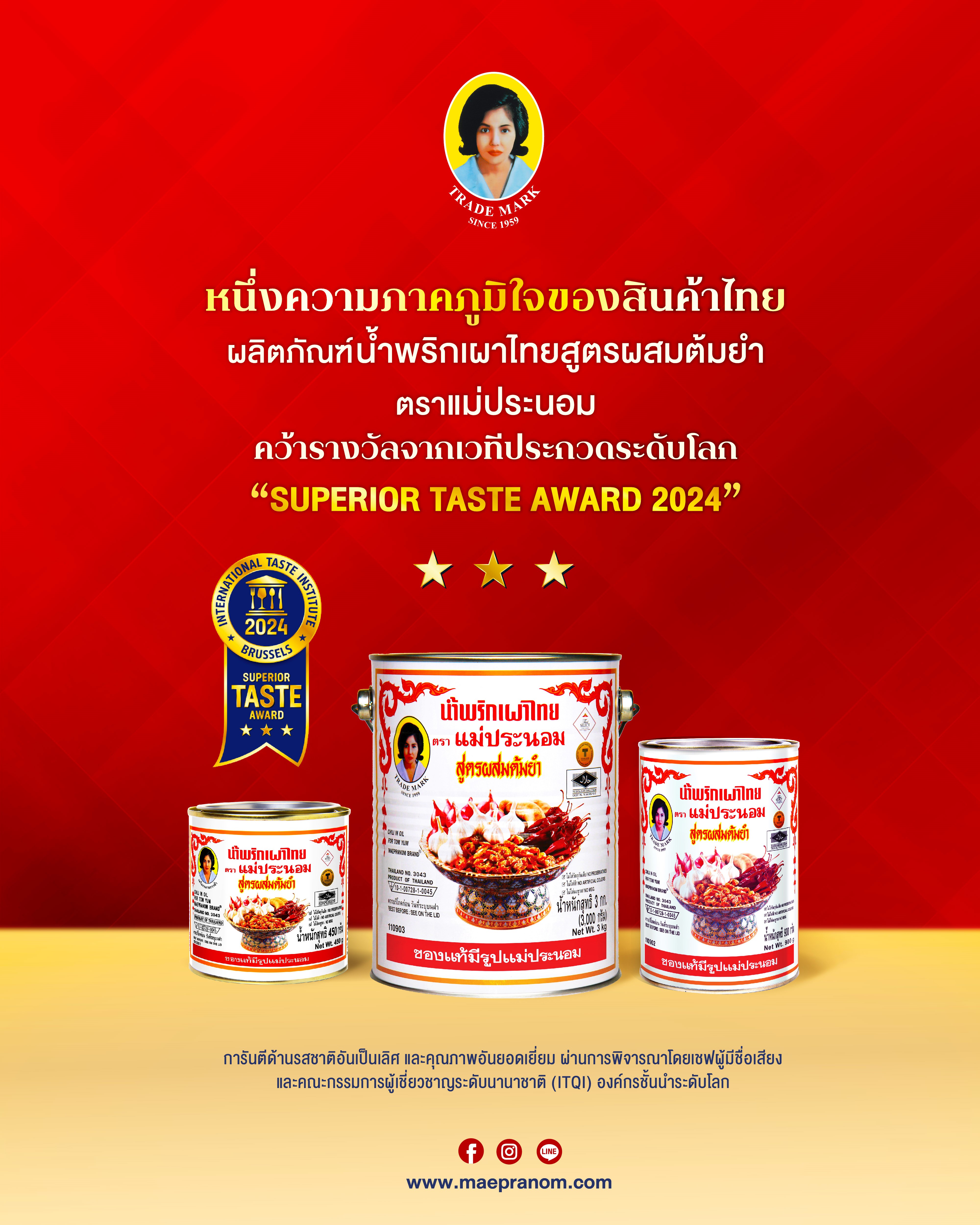 แม่ประนอมคว้ารางวัลระดับโลก รางวัล “Superior Taste Award 2024”