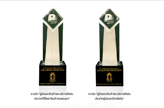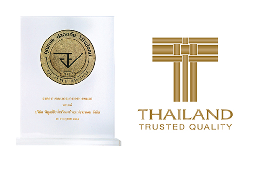 ได้รับคัดเลือกให้ใช้ "ตราสัญลักษณ์ คุณภาพไทยแลนด์" จาก กรมส่งเสริมการค้าระหว่างประเทศ กระทรวงพาณิชย์