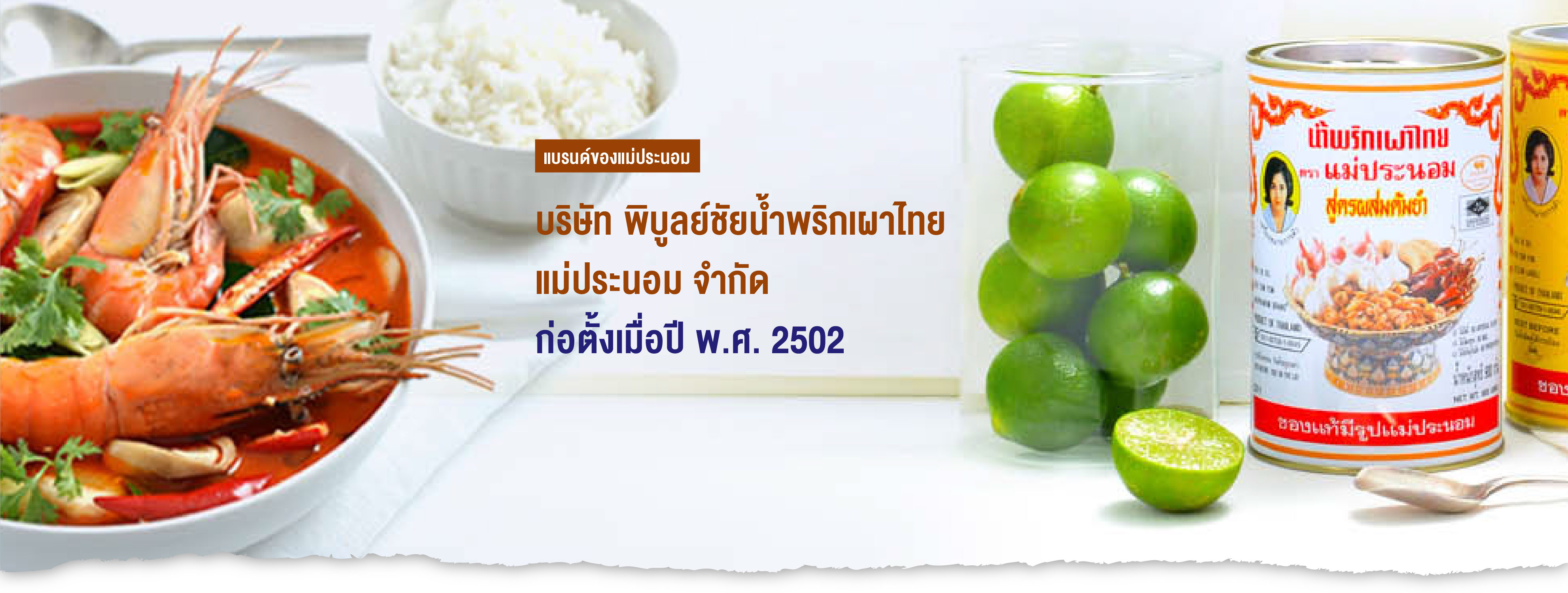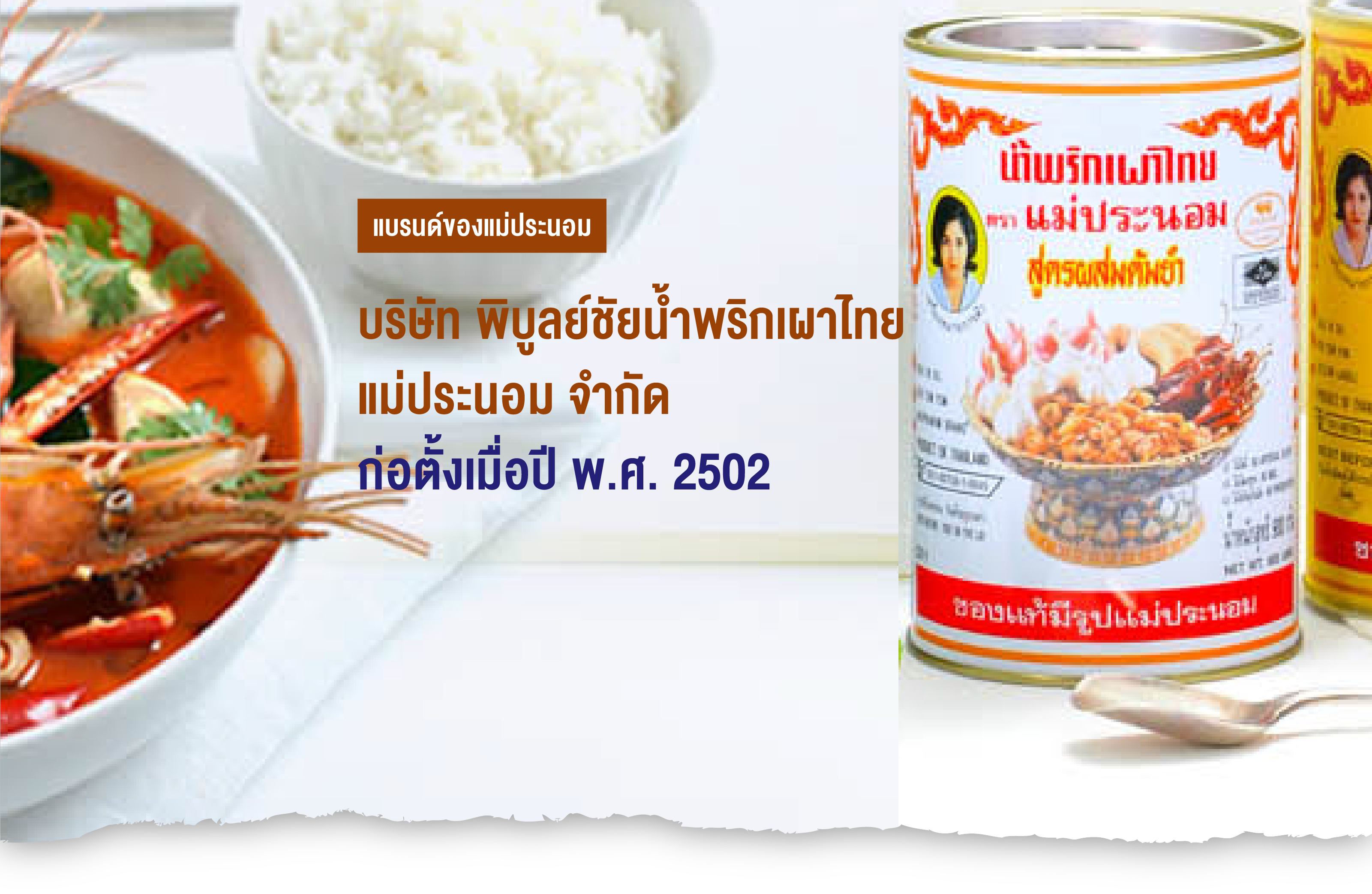 บริษัท พิบูลย์ชัยน้ำพริกเผาไทยแม่ประนอม จำกัด ก่อตั้งเมื่อปี พ.ศ. 2502 โดยคุณศิริชัย และคุณประนอม แดงสุภา โดยในระยะแรกบริษัทฯ เริ่มจากผลิตสินค้าเพียงชนิดเดียว คือ น้ำพริกเผาไทยบรรจุขวดแก้ว ภายใต้เครื่องหมายการค้า “ตราแม่ประนอม” ต่อมาได้พัฒนาธุรกิจเป็นผู้ผลิตและจำหน่ายน้ำพริก น้ำจิ้ม น้ำพริกแกง เครื่องปรุงรสสำเร็จรูป ผลิตภัณฑ์พร้อมปรุง และผลิตภัณฑ์อีกหลากหลายชนิด ภายใต้เครื่องหมายการค้า “ตราแม่ประนอม” และ “ตราครัวสยาม”